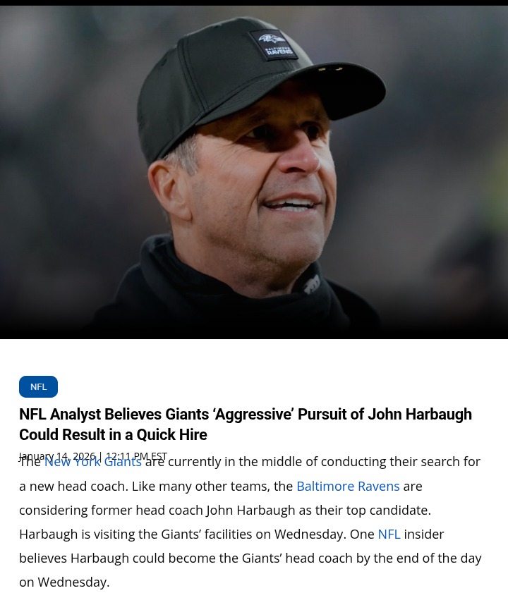 Jay Williams+FollowGiants go all-in for Harbaugh: What’s next?The New York Giants are pulling out all the stops to land John Harbaugh as their next head coach—think private jets, personal lunches, and nonstop calls. Insiders say if both sides want it, a deal could be done by tonight. Harbaugh’s Super Bowl pedigree and knack for building winning teams make him a dream hire for a franchise hungry for stability. But is it smart for Harbaugh to rush, or should he check out other offers first? Giants fans, how would you feel about Harbaugh leading Big Blue? Would this move finally turn things around? #Sports #Football #Giants20Share