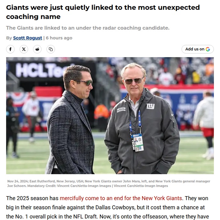 Jay Williams+FollowGiants Eye Vance Joseph for HC—Surprised?Big Blue Nation, here’s a twist: the G-Men are bringing in Vance Joseph for a head coach interview. After torching the league with Denver’s D (league-best 68 sacks!), Joseph’s name wasn’t on many Giants fans’ radars. But with Joe Schoen’s Miami connection and our defense needing a serious boost, this could be the bold move we need. Could Joseph and maybe even Davis Webb as OC finally break the post-Coughlin curse? #Sports #Football #GiantsNation10Share