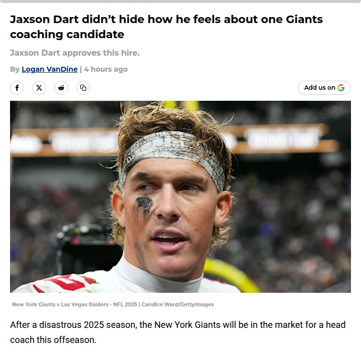 Chad Williams+FollowDart Vader Sets the Bar for Giants’ Next HCJaxson Dart just laid down the gauntlet for the G-Men’s coaching search. The rookie QB wants a head coach who can match his fire and vision—no more settling for less. After years of being “just a coach away,” it’s time for Joe Schoen to find a true CEO-type leader who can build around Dart’s potential. Giants fans, do you think Schoen will finally get it right? #Sports #Football #GiantsNation00Share