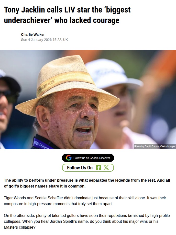Krystal Lopez+FollowSergio Garcia: Golf’s Great ‘What If?’Tony Jacklin didn’t hold back, calling El Niño the biggest underachiever in golf. Despite his Ryder Cup heroics and early promise, Sergio Garcia’s major heartbreaks—especially the 2007 Open collapse—still define his legacy for many fans. Was it a lack of nerve, as Jacklin claims, or just brutal luck? Garcia finally got his green jacket in 2017, but the debate over his career ceiling rages on. What do you think: did Sergio live up to his talent? #Sports #Golf #GolfDebate00Share