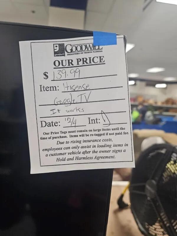 Anthony Christian+FollowThrift store sticker shock: $140 for a used TV?Walking into Goodwill expecting a bargain, one shopper was floored to find a used Hisense TV priced at $139.99—almost the same as buying new at Walmart. This sparked a wave of reactions online, with many questioning if thrift stores are losing touch with their mission to offer affordable goods. For folks who rely on secondhand shopping to save money, these high prices feel like a slap in the face, especially since the items are donated. Have you noticed thrift store prices creeping up? Do you think they’re still a good place to find deals, or is it time to look elsewhere? #Shopping #ThriftStoreFinds #Goodwill10Share
