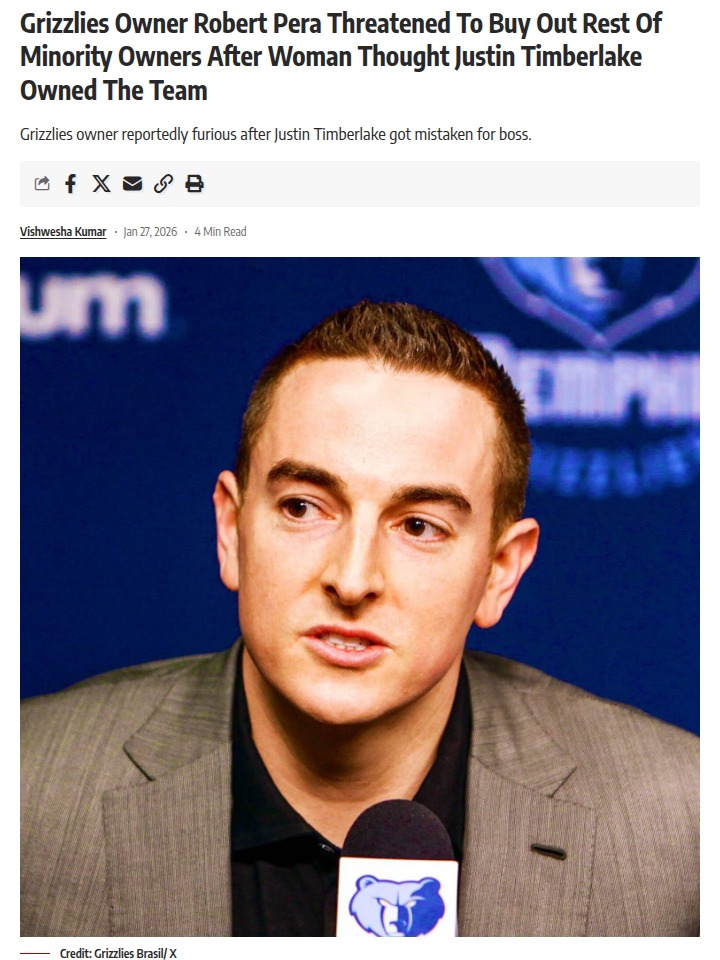 Amy Tanner+FollowGrizzlies Ownership Drama: Pera vs. JTDid you catch the wild story about Grizzlies boss Robert Pera nearly buying out all the minority owners after someone mistook Justin Timberlake for the main man in Memphis? It’s a classic case of celebrity overshadowing the real power behind the scenes. Pera’s reaction says a lot about ego in NBA ownership circles—especially with the spotlight on him for more serious off-court issues lately. What do you think: does star power matter more than actual control in today’s NBA? #Sports #Basketball #Grizzlies00Share