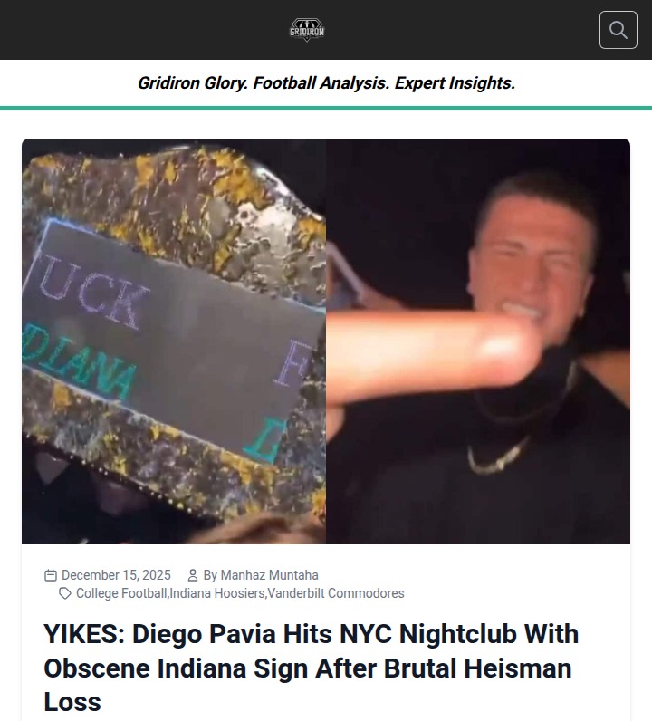 Chad Williams+FollowHeisman Fallout: Pavia’s NYC Club MeltdownTough night for Diego Pavia, who took his Heisman loss to King Mendoza hard—maybe too hard. Hours after finishing runner-up, the Commodores’ gunslinger was spotted in a NYC nightclub holding a not-so-family-friendly sign aimed at the Hoosiers. Fans are buzzing: is this just raw emotion or a rep hit for Pavia? The rivalry just got a new chapter, but this move feels more petty than legendary. Thoughts on whether Pavia owes Indiana an apology? #Sports #Football #Heisman00Share