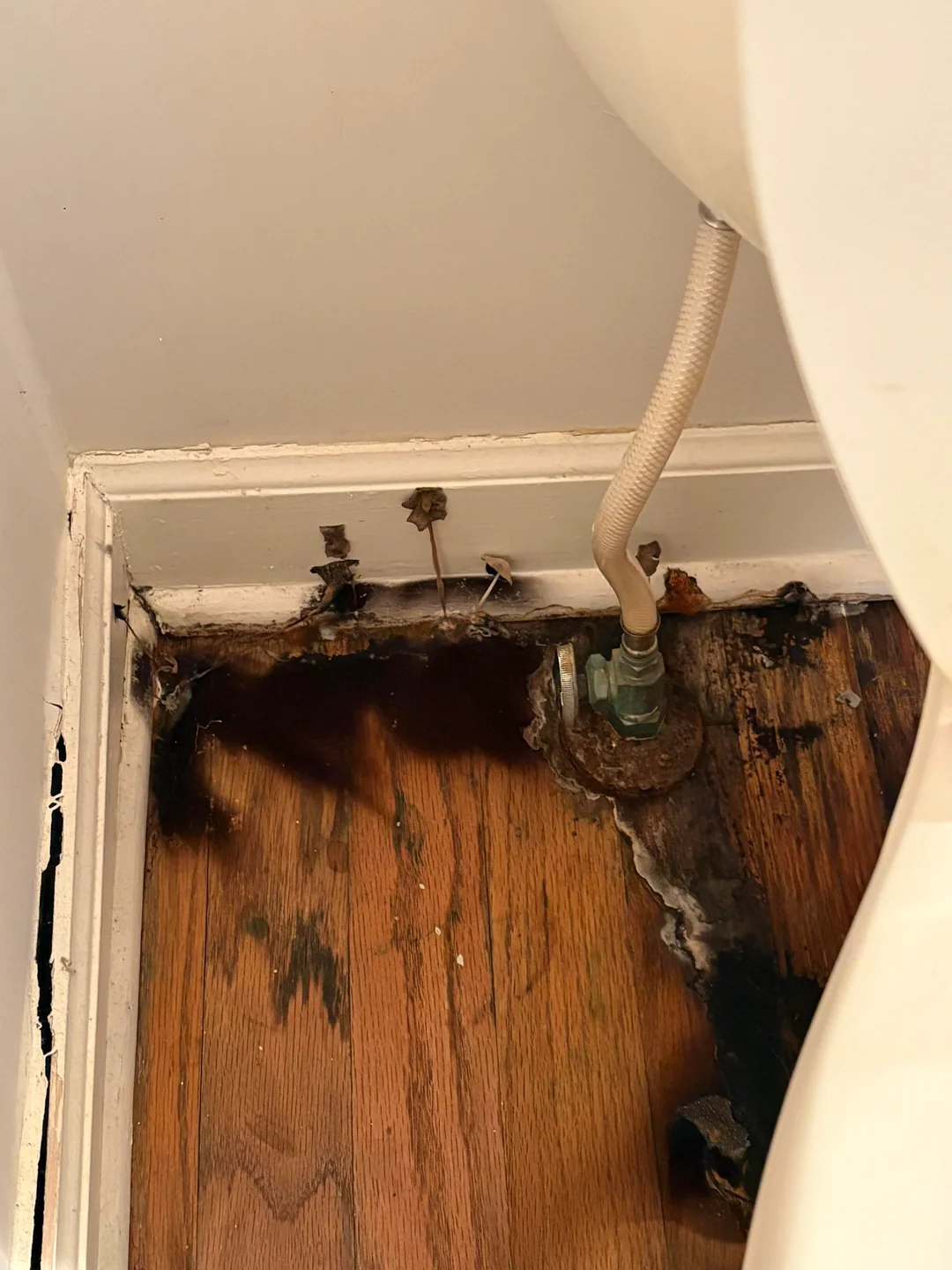 I found real mushrooms growing out of the stairs. How bad is this toilet leak?