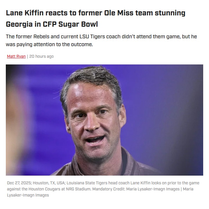 Chad Williams+FollowKiffin’s Exit Looks Worse After Ole Miss Sugar Bowl WinHotty Toddy, Rebel fans! After Ole Miss took down the Dawgs in the Sugar Bowl, it’s clear Lane Kiffin didn’t leave because he couldn’t win in Oxford. Pete Golding has the Rebels one step from the Natty, and now Ole Miss has more Sugar Bowl wins than LSU. Kiffin’s move to LSU looks even more questionable, especially since the Tigers aren’t in the CFP. Did he leave for the challenge, or just the paycheck? #Sports #Football #HottyToddy10Share