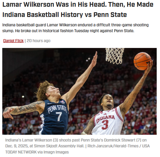 EchoingEagle+FollowLamar Wilkerson lights up IU basketball historyLamar Wilkerson just delivered a performance Hoosier fans will talk about for years—44 points, 10 threes, and a new Assembly Hall scoring record, all after a tough shooting slump. The energy in Bloomington was electric as Indiana cruised past Penn State, but it was Wilkerson’s confidence and his teammates’ trust that stole the show. Nights like this remind us how quickly fortunes can turn in sports—and how one hot hand can reignite a whole season. What’s your favorite all-time IU basketball moment? Let’s hear your stories! #Sports #IUBasketball #LamarWilkerson00Share