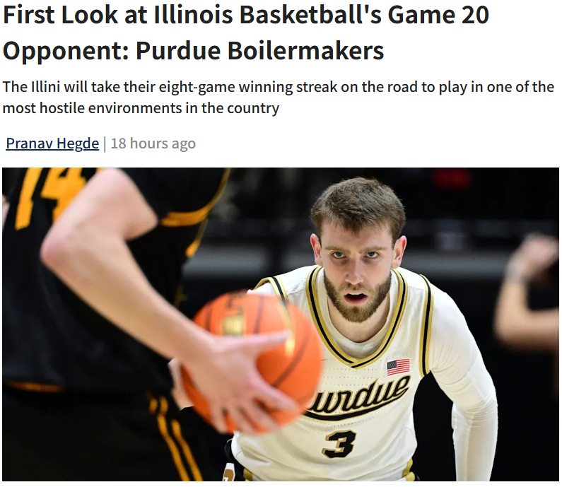 EchoingEagle+FollowIllinois faces Purdue’s toughest test yetSaturday’s matchup at Purdue is the ultimate gut check for Illinois basketball. After a big win over Maryland without Kylan Boswell, the Illini now head into Mackey Arena—one of the loudest, most unforgiving places in college hoops—to take on a Purdue team that’s built for March and hungry after a tough loss. Braden Smith is running the show for the Boilermakers, and Illinois will need every ounce of grit to keep up. Can the Illini hold it together and make a statement on the road, or will Purdue’s experience and home crowd prove too much? Let’s hear your predictions! #Sports #IllinoisBasketball #Purdue00Share
