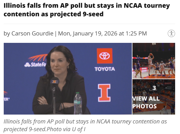 AmberAbyss+FollowIllinois women’s hoops: Still dancing?Illinois women’s basketball just edged out Northwestern in a nail-biter, but despite the win, they slipped out of the AP Top 25—now sitting at 26th. Berry Wallace was on fire with 29 points, but the team is still missing Gretchen Dolan due to injury, and Maddie Webber had an off night. Even so, ESPN projects Illinois as a 9-seed for the NCAA tournament, which is huge considering they’ve only made the Big Dance twice since 2003. With tough games ahead against Nebraska, UCLA, and Washington, every win counts. How confident are you in their tournament chances? #Sports #IllinoisBasketball #NCAAW00Share