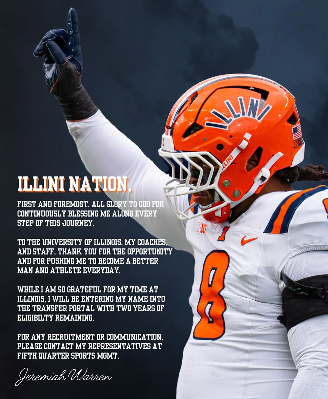 John Camacho+FollowIllinois football’s D-line shakeup: What’s next?Illinois football’s defensive line is seeing some big changes as another player, Jeremiah Warren, enters the transfer portal. While losing players is never easy, this move actually makes sense for both sides—Warren saw limited snaps last season and likely wouldn’t see much more in 2025. The good news? The Illini still have experienced talent up front, with Durojaiye, Neal, and McCullom returning. It’s a reminder of how quickly college rosters can shift these days. How do you feel about the transfer portal’s impact on building a team? #Sports #Football #IllinoisFootball00Share