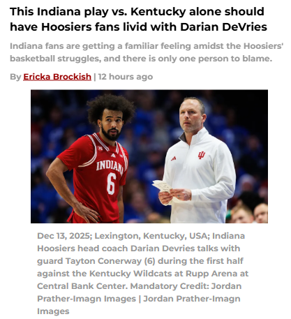 EchoingEagle+FollowIndiana vs Kentucky: Hoosiers’ second-half woes spark concernIndiana basketball fans are feeling déjà vu after a tough loss to Kentucky, where a promising first half turned into a second-half collapse. Despite an early lead, the Hoosiers couldn’t keep up and fell by 12 points, leaving many questioning the team’s effort and new coach Darian DeVries’ strategy. The most frustrating moment? Four Hoosiers failed to grab a rebound against a single Wildcat, leading to a game-changing three-point play. With Big Ten play heating up, fans are wondering: What needs to change for Indiana to finally turn the corner? #Sports #IndianaHoosiers #CollegeBasketball00Share