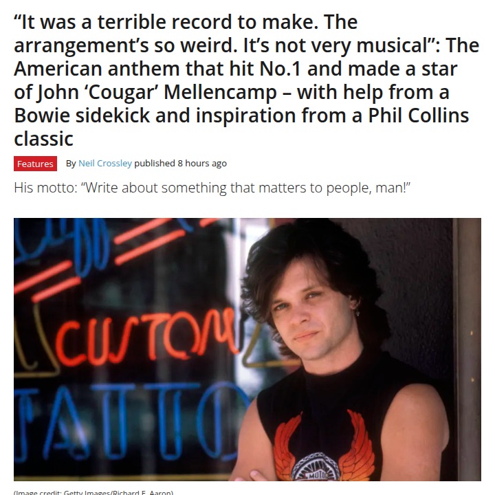 James Morgan+FollowJohn Mellencamp Nearly Ditched Jack & Diane? 😲Did you know Jack & Diane almost never happened? Mellencamp actually hated the song’s arrangement and called it a “terrible record to make.” The real twist: it was Mick Ronson (yes, Bowie’s guitarist!) who saved it with that iconic “let it rock, let it roll” part. Fans are still debating if Mellencamp’s dislike for his only No.1 is legit or just rockstar drama. Can you imagine if he’d junked it? #Entertainment #Music #JohnMellencamp41Share