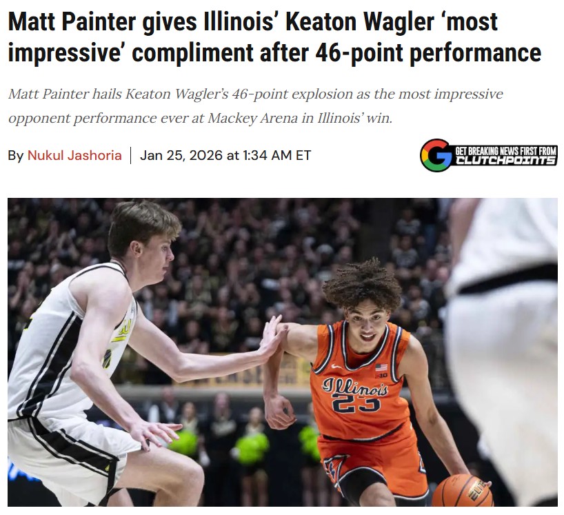 GalacticGiraffe+FollowWagler Drops 46, Illini Stun Purdue!Keaton Wagler just etched his name in Illini lore, torching Purdue for a record-breaking 46 points in Mackey Arena! The Boilermakers barely turned it over, but the freshman phenom was simply unstoppable. With the frontcourt raining threes and no Kylan Boswell, Illinois showed why they might have the best offense in the country. Is this Underwood’s best squad yet? Let’s hear your takes on this instant classic! #Sports #IllinoisBasketball #KeatonWagler00Share