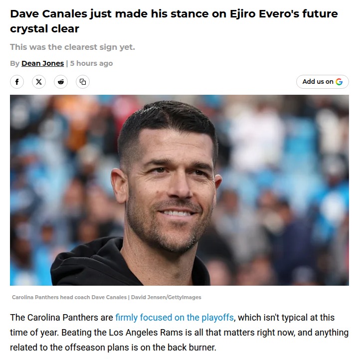Christopher Hughes+FollowPanthers D: Canales Backs Evero for 2024Big Cat Nation, Coach Canales just gave a huge shoutout to Ejiro Evero for the Panthers’ defensive turnaround this season. After a rocky 2023, Evero’s 3-4 scheme is finally clicking, and the team’s playoff push is proof. Canales’ public praise makes it clear—if Evero wants to stay, the door’s wide open. Will he stick around or chase a new gig? Let’s hear your takes! #Sports #Football #KeepPounding00Share