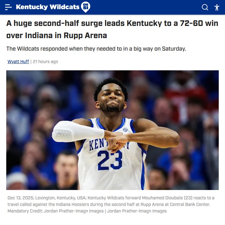 EchoingEagle+FollowIndiana vs Kentucky: Rivalry renewed SaturdayTwo college basketball giants, Indiana and Kentucky, are set to face off for the first time in nearly a decade, but both teams are in unfamiliar territory—neither is ranked in the AP Top 25. Indiana’s Lamar Wilkerson just exploded for 44 points and set a school record with 10 threes, but Kentucky’s defense has been tough on shooters all season. Meanwhile, Kentucky fans have been restless, demanding more from their team. With both squads hungry to prove themselves, this matchup could be a turning point. Who do you think will step up under the bright lights in Lexington? #Sports #IndianaHoosiers #KentuckyWildcats00Share