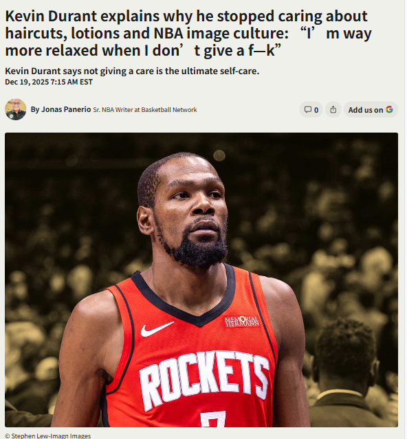 Michael Weiss+FollowKD’s Wild Take on NBA Image CultureKevin Durant just dropped a bomb on the whole NBA style game—he literally doesn’t care about haircuts, lotion, or even showering every day. While most players treat the arena like a runway, KD’s out here in hoodies and Chucks, saying he’s way more chill when he stops caring about his look. He even admits he’ll go days without a cut or a shower if he’s just gaming at home. KD really does things his own way! #Beauty #KevinDurant #NBA00Share