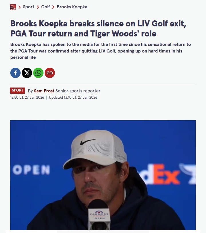 Michael Singh+FollowKoepka’s PGA Comeback: Tiger’s Key AssistBrooks “BK” Koepka is back on the PGA Tour after his high-profile LIV Golf exit, and he’s feeling the nerves at Torrey Pines. The big headline? Koepka’s first call after leaving LIV was to none other than Tiger Woods, who helped smooth his return. With the Farmers Insurance Open as his stage, Koepka’s comeback is about more than golf—it’s about family, redemption, and a little help from a legend. Thoughts on BK’s return and Tiger’s growing influence? #Sports #Golf #Koepka00Share
