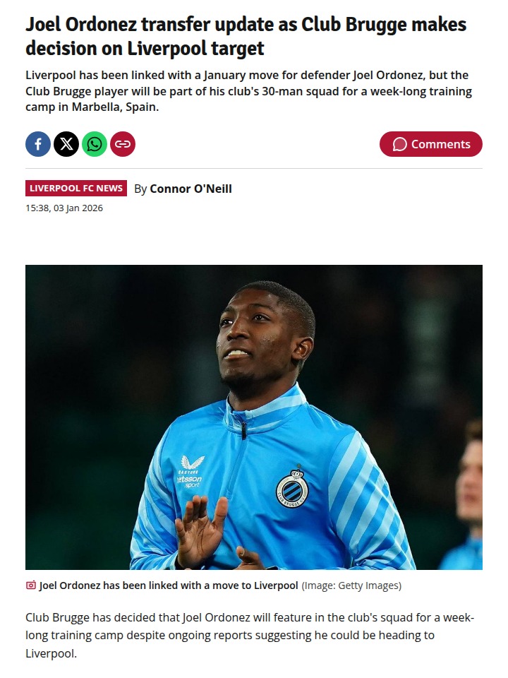 kochcandice+FollowOrdonez Saga: Brugge Blocks Reds Move?Looks like the Joel Ordonez-to-Liverpool rumors were a bit ahead of themselves! Despite heavy chatter from Ecuador, Club Brugge is keeping the young defender in their Marbella training camp squad for now. With Brugge just a point off the top in Belgium, it’s no surprise they’re holding onto their rising star. Could this stall open the door for another Anfield target, or is this just classic transfer window poker? #Sports #Soccer #LFC00Share