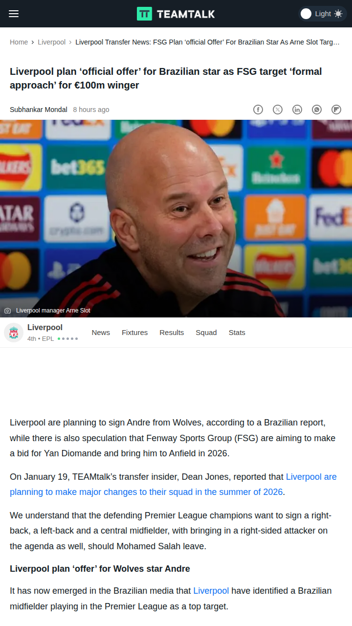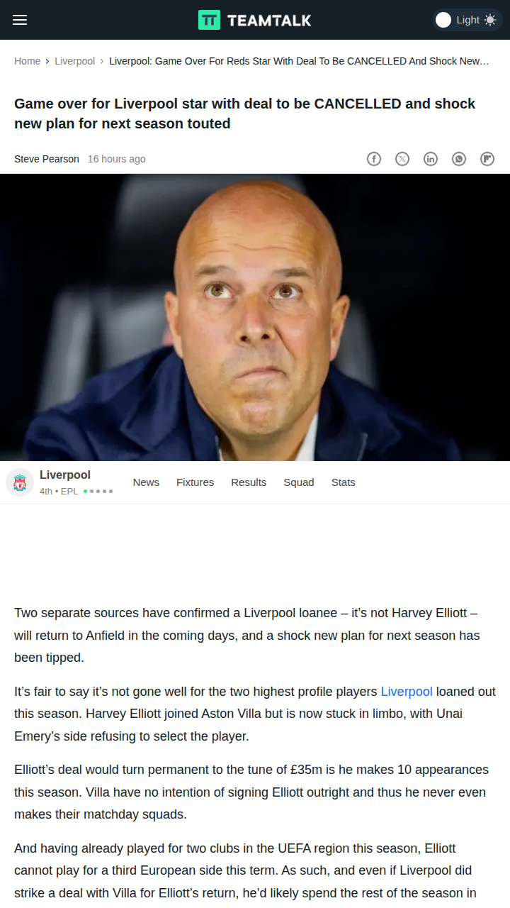 Jillian Morse+FollowSlot’s Fate at Anfield: Alonso Waiting in Wings?Reds fans, the Arne Slot era looks set to end this summer, with FSG reportedly eyeing club legend Xabi Alonso as the next man in the dugout. Despite a 12-game unbeaten run, Liverpool’s lack of swagger and dropped points against minnows have the board planning a big summer shake-up. The real drama? Alonso’s Real Madrid exit means he’s now the hot favorite—could we see a reunion at Anfield? #Sports #Soccer #LFC00Share