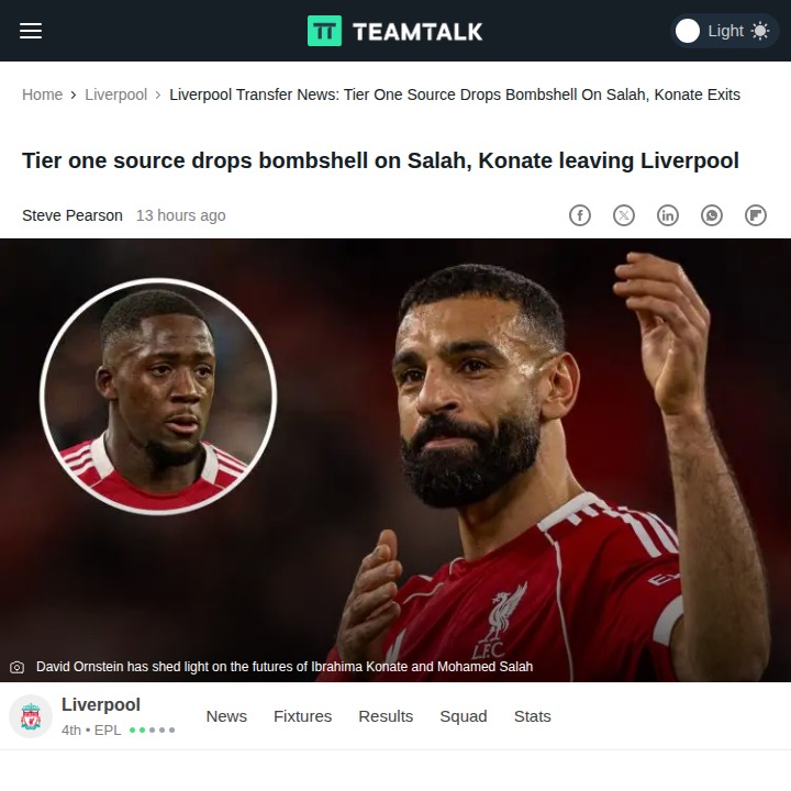 Allison Travis+FollowSalah & Konate: Reds' Summer Shake-Up?Big news from the Liverpool camp: trusted insider David Ornstein says Ibrahima Konate looks set to leave Anfield this summer with no contract breakthrough in sight. Meanwhile, the Egyptian King, Mo Salah, isn’t going anywhere this winter, but the club might cash in at season’s end if game-time promises aren’t met. Are we witnessing the end of an era for the Reds’ core? Let’s hear your thoughts on these potential exits! #Sports #Soccer #LFC00Share