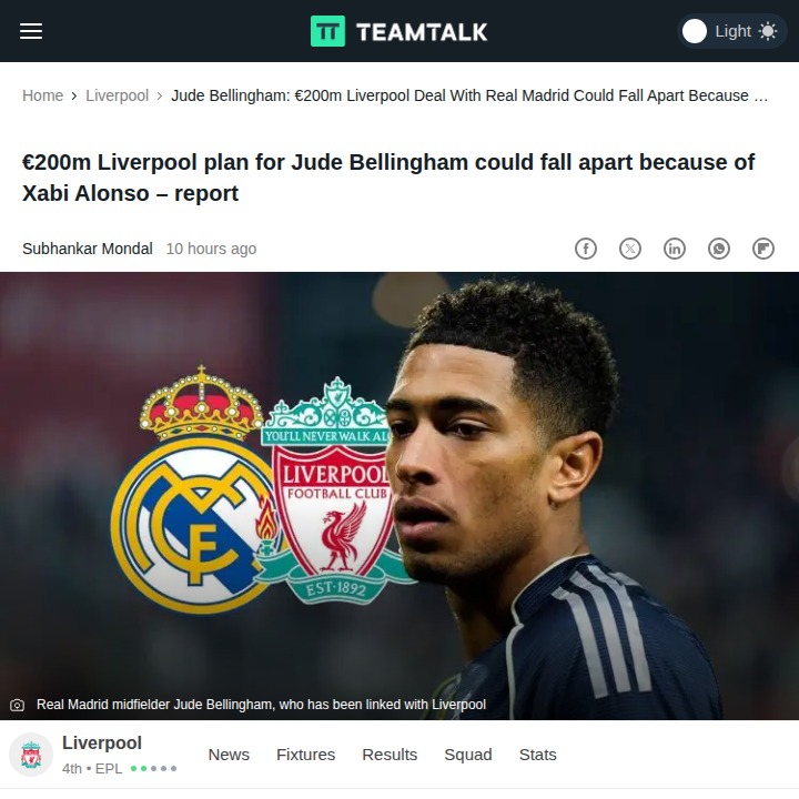 Timothy Thompson+FollowXabi Alonso Could Block Bellingham to LFCReds fans, the dream of seeing Jude Bellingham bossing Anfield in 2026 might hit a snag if Xabi Alonso takes the Liverpool hot seat. Reports suggest King Jude doesn’t fit into Alonso’s system, which could kill any €200m move from Real Madrid. With Bellingham’s stellar record at Los Blancos, would you risk missing out if Alonso returns as manager? Let’s hear your thoughts on this potential transfer twist! #Sports #Soccer #LFC00Share
