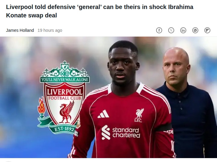 Tara Moran+FollowKonsa for Konate: Reds’ Defensive Shake-Up?Big news for the Anfield faithful—Liverpool might be eyeing a shock swap deal, sending Ibrahima Konate to Villa in exchange for Ezri Konsa, the defensive ‘general’ who’s been bossing it for the Villans. With King Virgil’s future also uncertain, could Konsa be the next leader at the back? Swap deals are rare, but this one could suit both sides if the numbers add up. Thoughts on Konsa as our new rock? #Sports #Soccer #LFC00Share