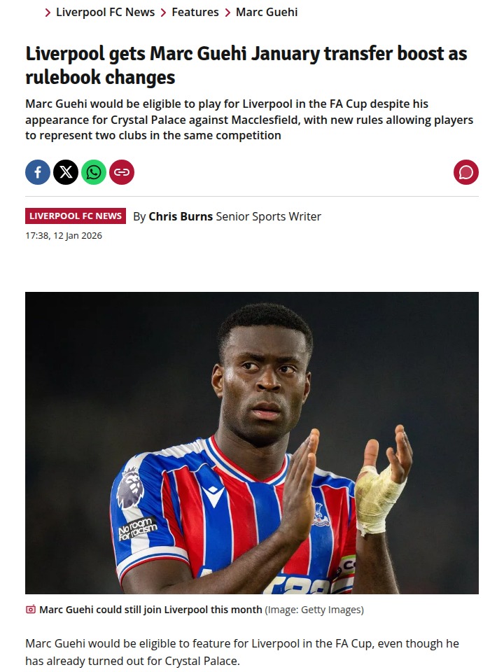 kochcandice+FollowFA Cup Rule Twist: Guehi to Liverpool?Reds fans, here’s a twist in the FA Cup saga! With the new rulebook, Marc Guehi could actually play for Liverpool in the FA Cup—even though he already featured for Palace. That’s right, no more automatic cup-tied status. If Liverpool lands the England international this January, he’s eligible from the fourth round on. Imagine Guehi shoring up our backline in a deep cup run. Thoughts on this rule change and what it means for our FA Cup hopes? #Sports #Soccer #LFC00Share