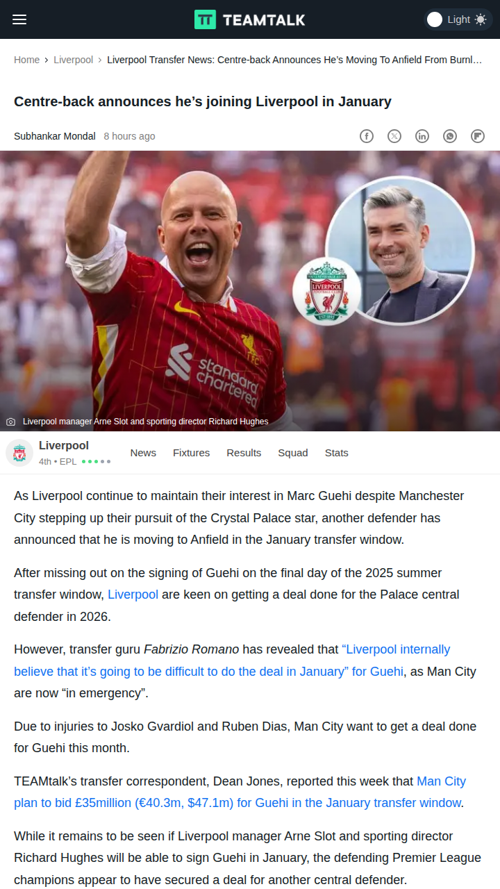 rogerschristine+FollowReds Land Adekoya Amid Guehi Transfer BattleBig news for the Anfield faithful! While the Reds are still eyeing Palace’s Marc Guehi, it’s Man City who’ve gone all-in with a £35m bid, thanks to their injury crisis. But Liverpool just made a sneaky move—18-year-old Noah Adekoya has confirmed he’s joining the Reds from Burnley this January. Could this youngster be the next big thing at the back for Arne Slot’s side? Let’s talk what this means for the Guehi saga and our defensive future! #Sports #Soccer #LFC00Share