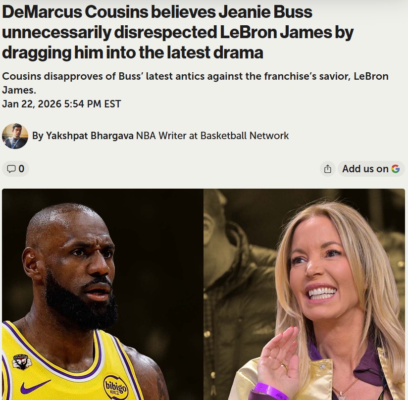 Oscar Gonzalez+FollowBoogie Calls Out Jeanie Buss Over King James DramaBoogie Cousins didn’t hold back on the latest Lakers drama, calling out Jeanie Buss for dragging King James into controversy. Boogie reminded everyone that LBJ put the Lakers back on the map when nobody wanted to come to L.A. and the Clippers were running the city. With the Lakers about to face the Clippers, all eyes are on how LeBron responds—will he clap back or let his game do the talking? #Sports #Basketball #Lakers00Share