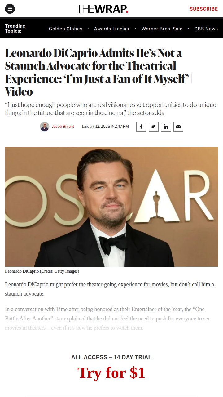 michaellowe+FollowLeo DiCaprio’s Theater Take Sparks Debate 🎬Leonardo DiCaprio just admitted he’s not out here fighting for the theater experience—he’s just a fan himself! Some fans are shocked he’s not more vocal about saving cinemas, especially after his big year with “One Battle After Another.” Others think he’s just being real about how fast streaming is taking over. Is Leo letting theaters fade or just staying honest? #Entertainment #Movies #LeonardoDiCaprio00Share
