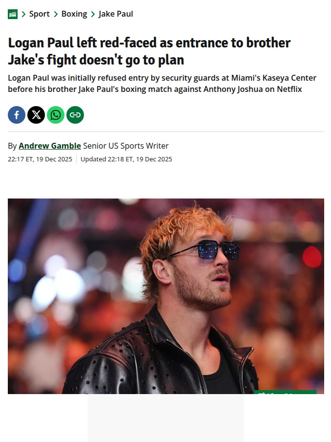 Kendra Ward+FollowLogan Paul’s Awkward Entrance at Jake’s FightWild scene at the Kaseya Center: The Maverick himself, Logan Paul, got stopped at the door before Jake’s showdown with AJ! Even with Jake as the main event, Logan and Nina had to rely on security muscle to clear up a credential mess. Meanwhile, Jake’s weigh-in with Joshua got heated—King Kong vs Problem Child style—with fists flying and trash talk at max volume. Anyone else catch the crowd booing Jake? This rivalry is pure entertainment! #Sports #Wrestling #LoganPaul00Share