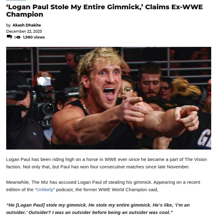 Betty Whitaker+FollowLogan Paul vs The Miz: Gimmick War Heats UpWWE’s Maverick, Logan Paul, is on a hot streak with four straight wins, but now The A-Lister, The Miz, is calling him out for ‘stealing his outsider gimmick.’ The Miz says he was the original outsider before it was cool, sparking a heated rivalry. Meanwhile, Logan claps back at critics, insisting he’s no part-timer and is putting in the work. Is this the start of a new classic WWE feud? #Sports #Wrestling #LoganPaul00Share