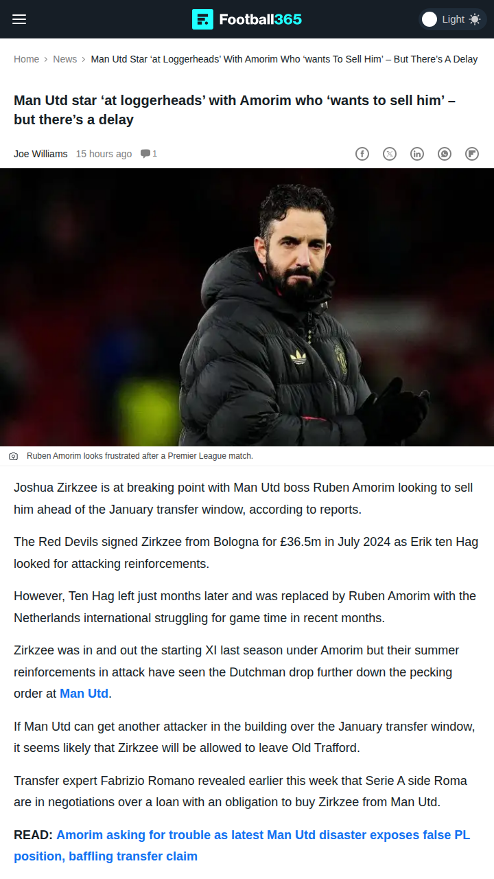 Jillian Morse+FollowRed Devils’ Zirkzee Saga: Amorim StandoffLooks like there’s real tension brewing at Old Trafford between Joshua Zirkzee and new boss Amorim. After King Erik’s exit, Zirkzee’s minutes have dried up, and now Amorim’s ready to ship him out—if the Red Devils can land a new striker in January. Roma are circling, but United won’t let Zirkzee go until a replacement is lined up. Is this the end of Zirkzee’s Manchester dream, or will he fight his way back into the XI? #Sports #Soccer #MUFC00Share