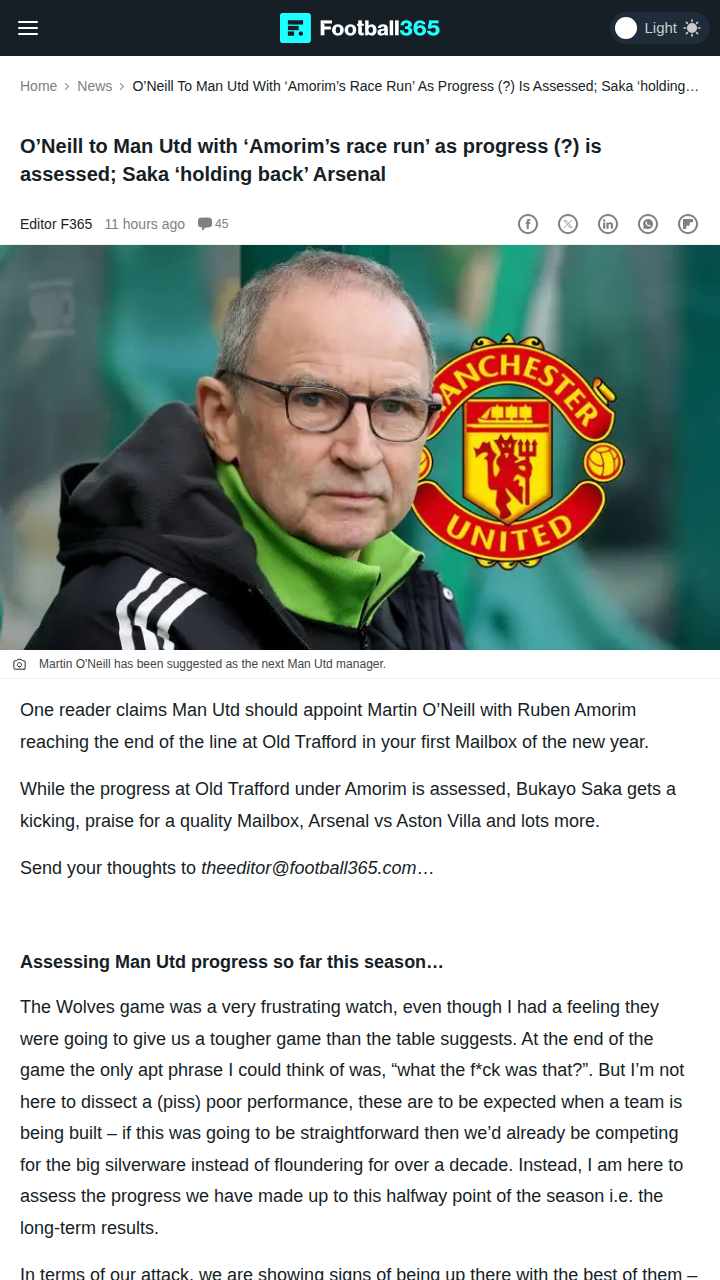 Charles Mills+FollowIs Amorim Out of Time at Old Trafford?United fans, is Ruby’s reign running on fumes? After another shaky defensive display, some are calling for Martin O’Neill to step in, with Amorim’s progress under the microscope. The attack’s clicking, but our backline is still leaking goals. Meanwhile, Arsenal’s Saka is getting stick for slowing down their left-sided surge against Villa. Is it time for a change at the top, or do we stick with the rebuild? Sound off, Reds! #Sports #Soccer #MUFC01Share