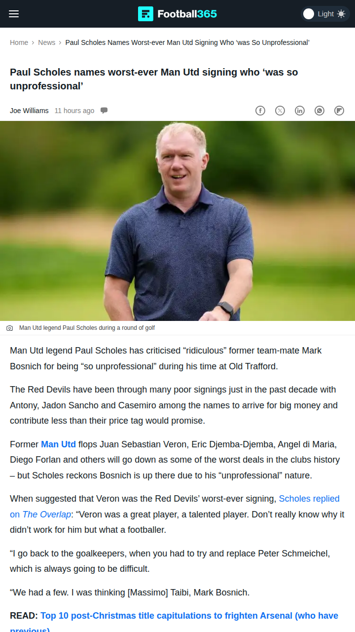 Tara Moran+FollowScholes Slams Bosnich: Worst Red Devil Ever?Red Devils fans, Scholes just dropped a bomb on The Overlap, calling Mark Bosnich the most unprofessional Man Utd signing ever! Forget the usual flops like Veron or Di Maria—Scholes says Bosnich’s lack of effort and professionalism, especially after Schmeichel left, made him stand out for all the wrong reasons. Even Sir Alex backed that up in his book. Did Bosnich really deserve this label, or is Scholes being harsh? Let’s hear your takes! #Sports #Soccer #MUFC00Share