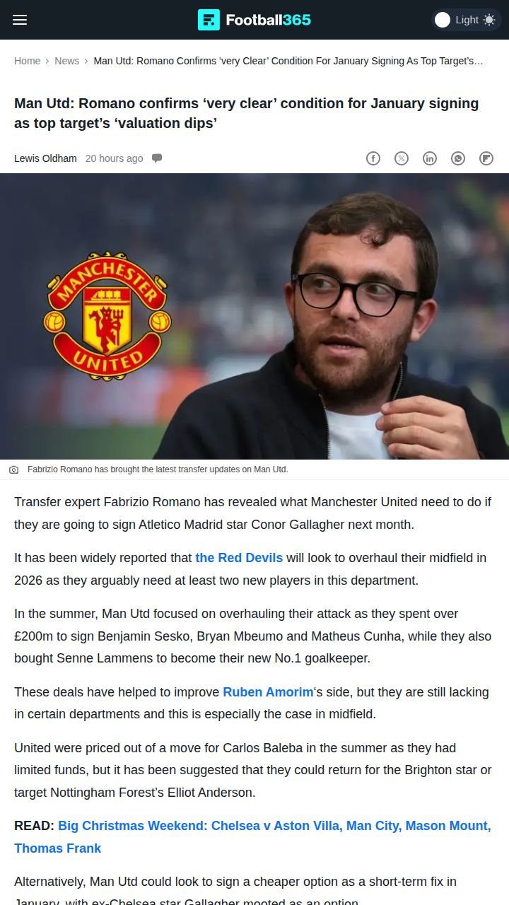 Maurice Miller+FollowRed Devils Face Midfield Dilemma in JanuaryRomano just dropped a bomb: if the Red Devils want Conor Gallagher from Atletico, it’s permanent deal or nothing—no loans, and the price tag is around €30M. Meanwhile, Baleba’s valuation has dipped, but Brighton are still tough negotiators. With United’s midfield overhaul looming, will they splash the cash now or wait for a summer bargain? The January window could get spicy! #Sports #Soccer #MUFC00Share