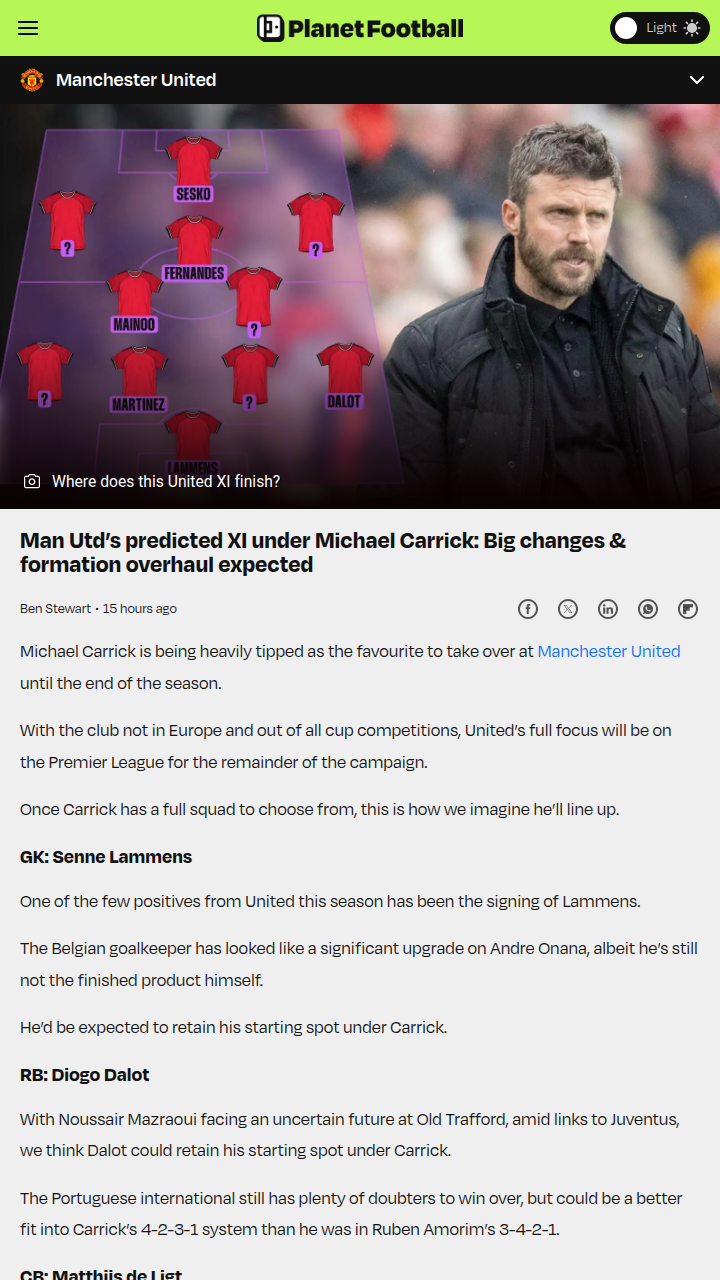 Malik Williams+FollowCarrick’s Red Devils XI: Big Shakeup Incoming?Looks like Michael Carrick is set to take the reins at Old Trafford, and fans are buzzing about the predicted XI. The big talking point? A major formation overhaul with Senne Lammens in goal and De Ligt-Martinez reuniting at the back. Expect Casemiro and Mainoo to anchor midfield, while Bruno returns to his best spot. Can Carrick’s tweaks finally unlock Sesko up top and get United firing again? Let’s hear your thoughts on this new-look Red Devils lineup! #Sports #Soccer #MUFC00Share