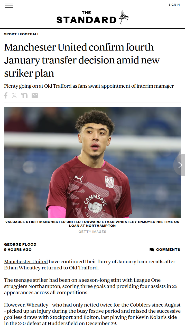 Tara Moran+FollowRed Devils Recall Wheatley: Loan Shake-UpHeads up, Red Devils fans! Manchester United have recalled young striker Ethan Wheatley from his loan at Northampton, marking their fourth early recall this January. Wheatley, who showed flashes of promise before picking up an injury, is expected to find a new EFL loan once fit. This move signals United’s intent to reshuffle their striker options and keep their future stars close. Thoughts on how this could impact our attacking depth? #Sports #Soccer #MUFC00Share