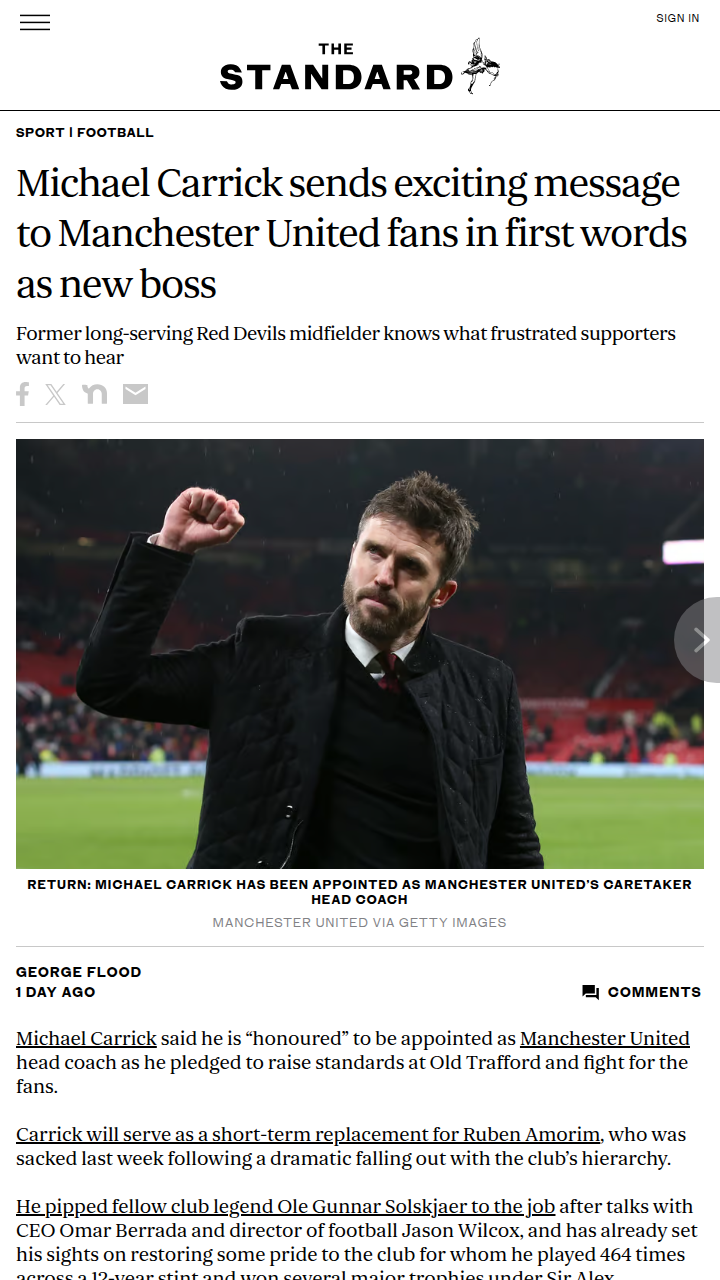 watkinsross+FollowCarrick Takes the Wheel at Old TraffordRed Devils fans, it’s official—Midfield Maestro Michael Carrick is back, this time as the boss! After a dramatic shakeup, Carrick steps in for Amorim and promises to restore pride and standards at the Theatre of Dreams. With the Manchester Derby looming, can Carrick’s inside knowledge and passion spark a turnaround against City? Let’s hear your thoughts on Carrick’s appointment and what it means for our rivalry with the noisy neighbors! #Sports #Soccer #MUFC00Share