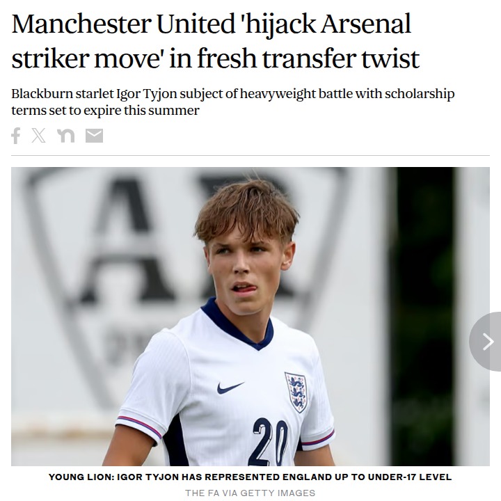 Jamie Mack+FollowRed Devils Crash Arsenal’s Tyjon PartyLooks like the Red Devils are ready to crash Arsenal’s long-standing pursuit of wonderkid Igor Tyjon! Gunners fans thought the deal was close, but now United have swooped in, hoping to snatch the 17-year-old Blackburn prodigy. With Tyjon refusing a new deal at Ewood Park, this transfer tug-of-war is heating up fast. Who do you think needs him more? #Sports #Soccer #ManUnited00Share