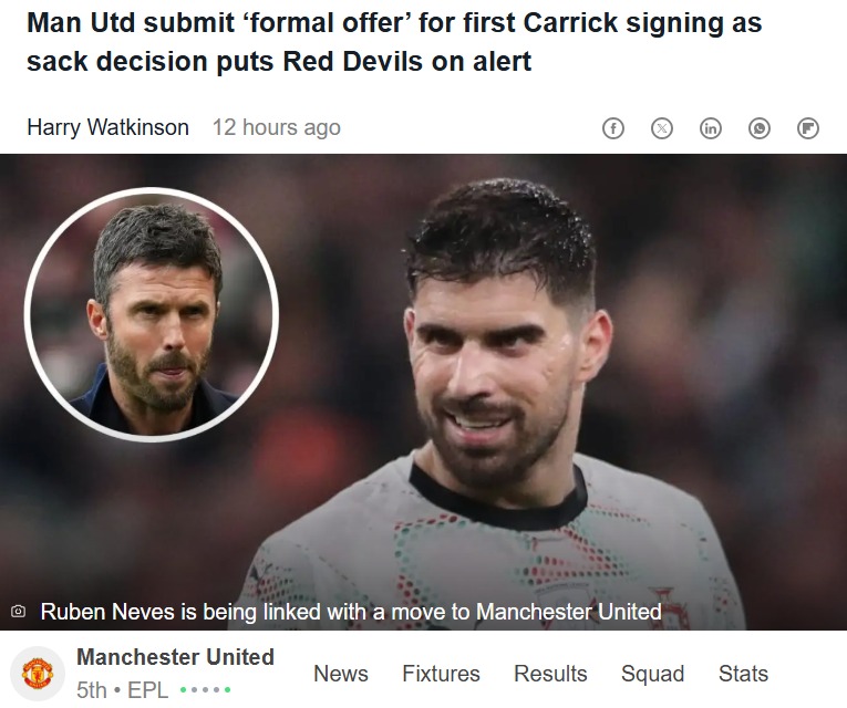 Allison Travis+FollowCarrick’s Red Devils Era Begins with Derby WinWow, what a start for Carrick at the helm! The Red Devils took down City 2-0 at Old Trafford, but the real buzz is about United’s formal offer for Ruben Neves. With midfield reinforcements needed, it looks like United are pushing hard to land the ex-Wolves maestro. Meanwhile, the Glasner drama at Palace could shake up the managerial scene. Do you think Neves is the missing piece, or should United focus on locking in Carrick long-term? #Sports #Soccer #ManUtd00Share