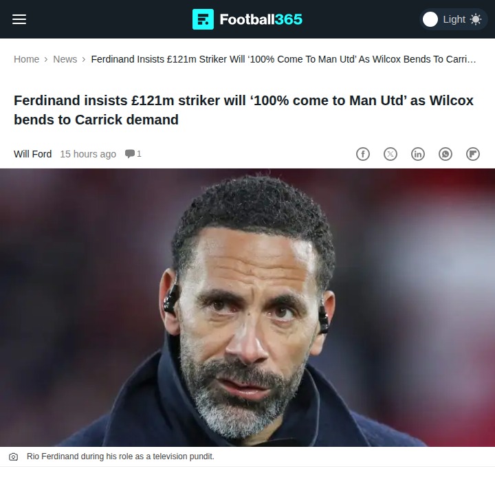 Jamie Mack+FollowOsimhen to Old Trafford? Rio Says 100% Yes!Red Devils fans, Rio Ferdinand is adamant: if United make a move, Victor Osimhen would 100% join us. With Osimhen smashing in goals for Galatasaray and our own strikers struggling, the pressure is on Wilcox and Carrick to make something happen. The big question—will United break the bank for the £121m man, or settle for a short-term fix on the wing? Let’s hear your takes! #Sports #Soccer #ManUtd00Share
