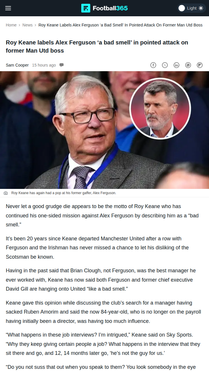 rogerschristine+FollowKeane Calls Out Fergie’s Shadow at Man UtdRoy Keane isn’t holding back—again. The Irish legend took another swipe at Sir Alex, calling him and David Gill a “bad smell” still lingering over United’s decision-making. Keane’s main gripe? He thinks Fergie’s influence is stalling the club’s progress, especially with the ongoing manager hunt. He even threw Eddie Howe’s name in the ring as his pick for the next boss. Classic Keano, never one to mince words when it comes to old rivalries! #Sports #Soccer #ManUtd00Share