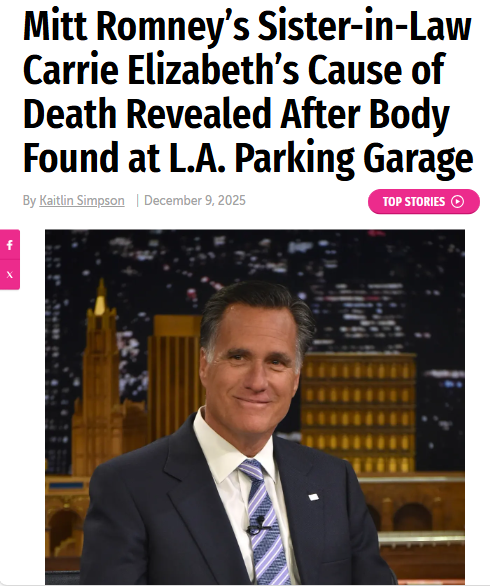 Chad Kemp+FollowA heartbreaking loss for the Romney familyThe news about Carrie Elizabeth Romney’s passing has hit hard—her death was ruled a suicide after a fall from a Los Angeles parking garage. She was Mitt Romney’s sister-in-law and had recently been going through a divorce. It’s a reminder that even those who seem to have it all can face deep struggles. The family has asked for privacy, but this tragedy sparks important conversations about mental health and support during tough times. How can we better look out for each other, especially when someone is quietly hurting? #Entertainment #Celebrity #MentalHealthMatters5717Share