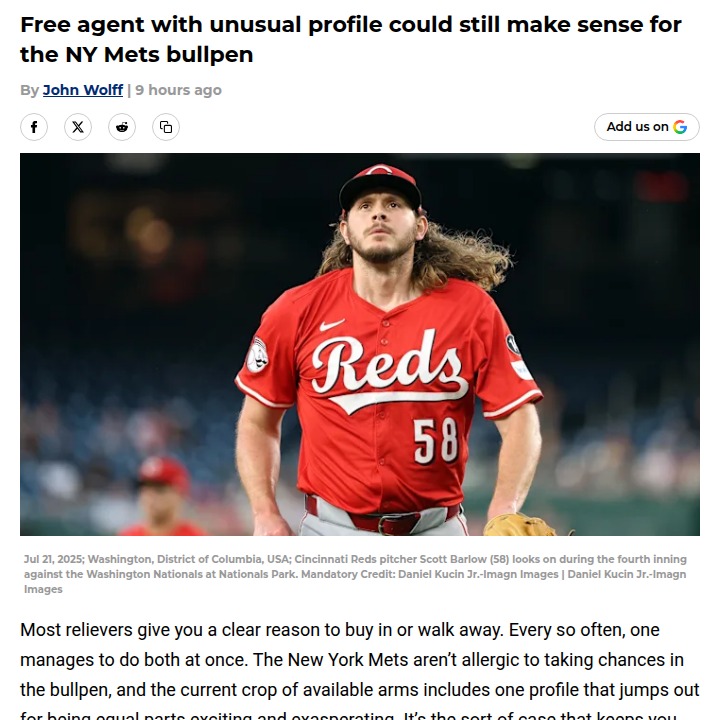 Catherine Reeves+FollowWhy Scott Barlow could be the Mets’ secret weaponScott Barlow’s numbers are a wild ride—he’s got one of the best hard-hit rates in the league, but his walk rate is near the bottom. The Mets need bullpen help, and Barlow’s ability to limit hard contact is something teams dream about. If the coaching staff can help him cut down on walks, he could go from frustrating to fantastic in a hurry. With his $2.6 million price tag and proven ability to get outs when he’s on, is he worth the gamble? Would you take a chance on Barlow for the Mets’ bullpen? #Sports #Baseball #Mets10Share
