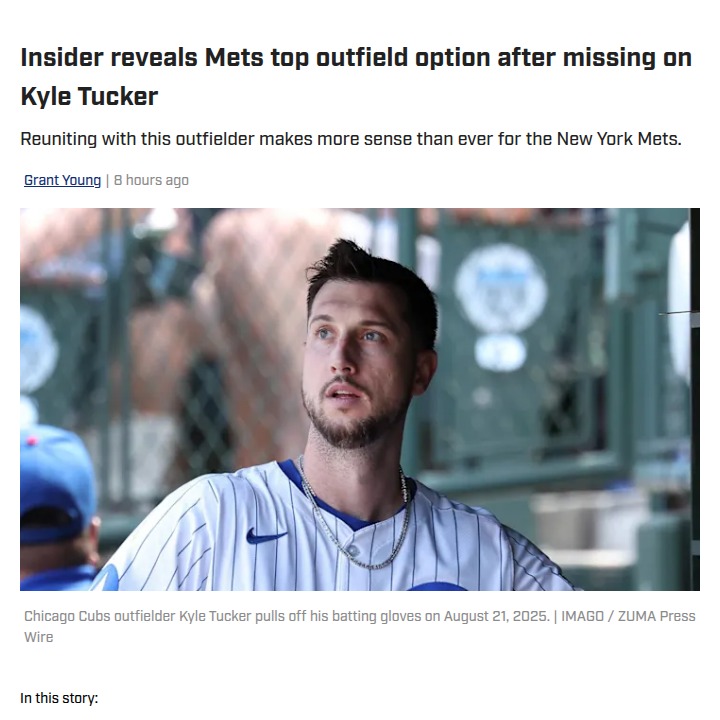 Catherine Reeves+FollowMets pivot after losing Kyle Tucker to DodgersKyle Tucker just signed a massive $240 million deal with the Dodgers, leaving Mets fans wondering what’s next for New York’s outfield. The Mets made a strong push but fell short, then quickly grabbed Bo Bichette to boost their infield. But the outfield gap remains. Now, insiders are floating the idea of bringing back Harrison Bader, who had a standout run with the Phillies last season. Would a Bader reunion be enough, or should the Mets go all-in for someone like Cody Bellinger? Let’s hear your thoughts on the Mets’ next move! #Sports #Baseball #Mets00Share