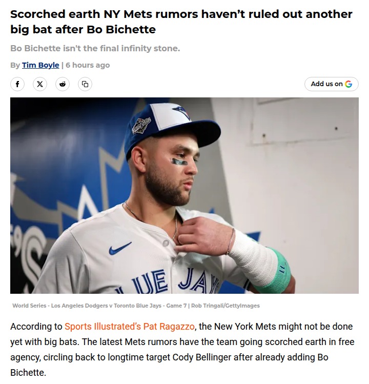 terrysharon+FollowMets Eye Bellinger After Bo Bichette SplashTalk about flipping the script! The Amazins just dropped $126M on Bo Bichette, and now the rumor mill is buzzing about Cody Bellinger possibly joining the fold—right as the Yankees are making their own push. If the Mets can poach Belli from the Bronx Bombers, it would be another classic move in this heated rivalry. Would you go long-term for Bellinger to build a super lineup with Lindor, Soto, and Bichette? Let’s hear your takes! #Sports #Baseball #Mets10Share