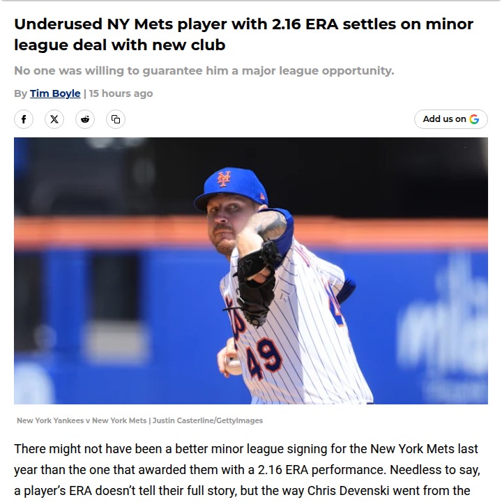 terrysharon+FollowMets Missed Out: Devenski Heads to PiratesChris "Devo" Devenski quietly posted a 2.16 ERA for the Amazins last year, but somehow the Mets kept him on the back burner—even as they set an MLB record for most pitchers used! Now, the veteran reliever is off to the Pirates on a minor league deal. Did the Mets let a hidden gem slip away, or was there more to the story? Let’s hear your takes on this bullpen saga! #Sports #Baseball #Mets10Share