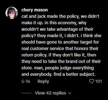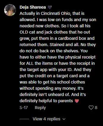 Erica Cole+FollowTarget Mom Tries to Return Outgrown Kids' ClothesWould you ever try to return your kid’s outgrown clothes? One mom did just that at Target, and TikTok is losing it. She tried to bring back a bag of worn Cat & Jack clothes because her daughter outgrew them, citing Target’s generous return policy. The associate pushed back, saying that’s not what the policy’s for. People are divided—some say it’s genius in this economy, others call it wild. Where do you stand on this? #Beauty #TargetFinds #MomLife11Share