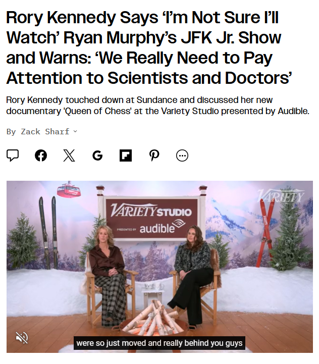 Kelsey Cook+FollowRory Kennedy Throws Shade at Ryan Murphy’s JFK Jr. Show 👀Rory Kennedy just dropped a bomb at Sundance, saying she’s not sure she’ll even watch Ryan Murphy’s new JFK Jr. series. She was super close to John and seems worried the show might get the story wrong. Fans are already debating if Murphy will respect the Kennedy legacy or just go for drama. This could get messy! #Entertainment #Movies #RoryKennedy00Share