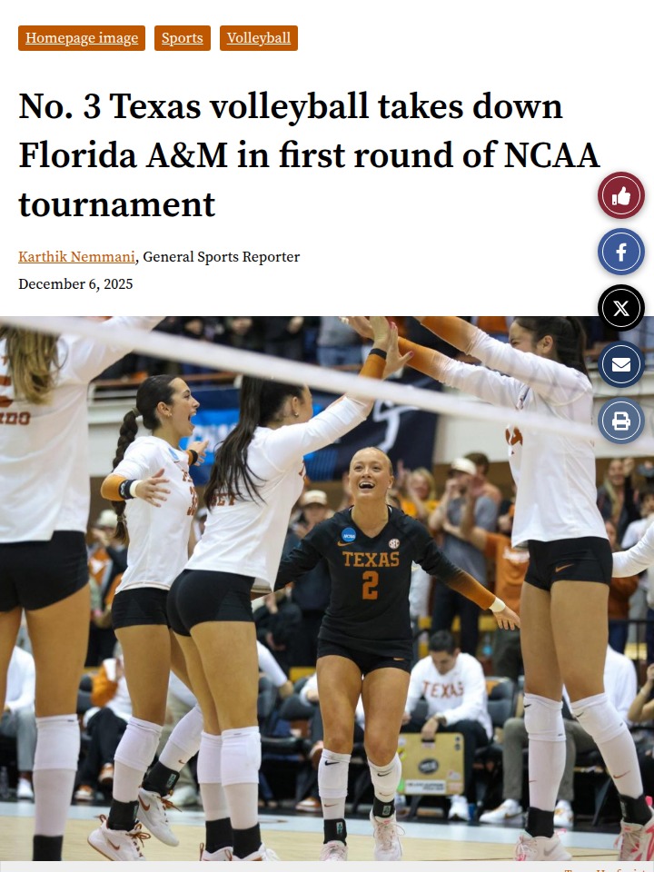 Jacob Morris+FollowTexas volleyball sets up epic showdown vs Penn StateTexas volleyball just steamrolled Florida A&M, keeping their perfect first-round NCAA streak alive at 42-0. The real buzz? Now they’re facing defending national champs Penn State in the second round—right here at Gregory Gym. Emma Halter was everywhere on defense, breaking a school record with 25 digs in just three sets. With the Longhorns hitting .425 and barely making mistakes, this matchup with Penn State is shaping up to be a can’t-miss battle. Who do you think has the edge in this high-stakes clash? #Sports #TexasVolleyball #NCAATournament00Share